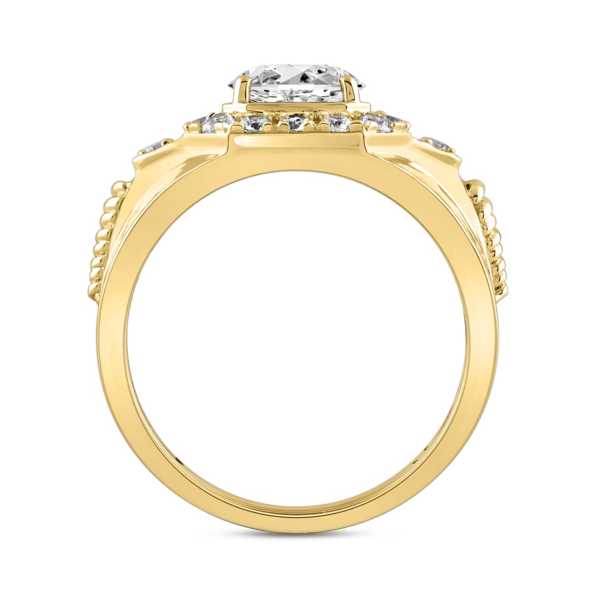 MENS RING 1 1/2CT ROUND DIAMOND 14K YELLOW GOLD