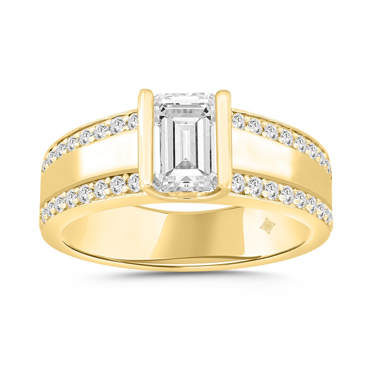MEN’S RING 2CT ROUND/EMERALD DIAMOND 14K YELLOW GOLD (CENTER STONE EMERALD DIAMOND 1 1/2CT )