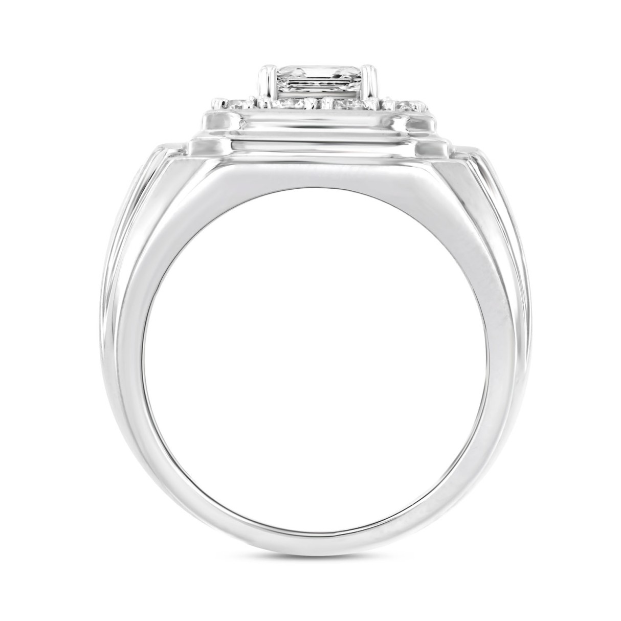 MEN’S RING 2CT ROUND/PRINCESS DIAMOND 14K WHITE GOLD (CENTER STONE PRINCESS DIAMOND 1CT )