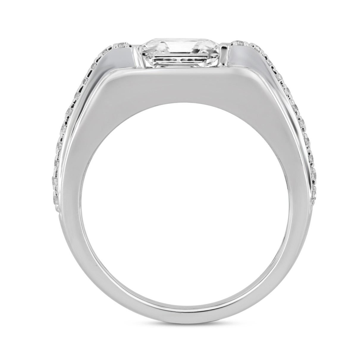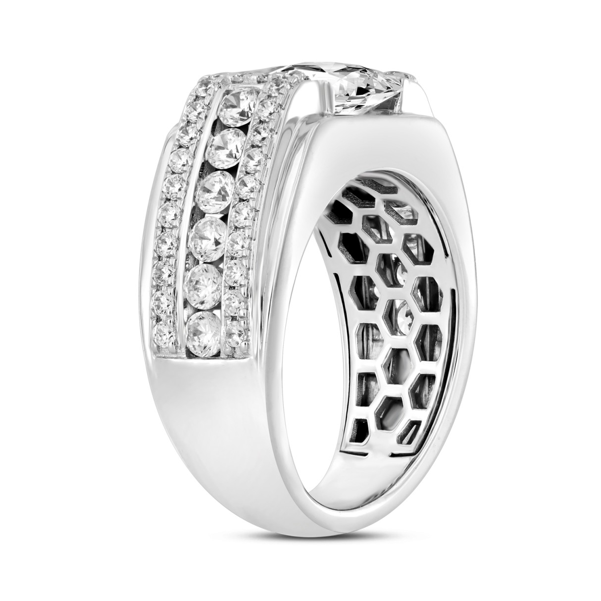 MEN’S RING 3 1/2CT ROUND/PRINCESS DIAMOND 14K WHITE GOLD (CENTER STONE PRINCESS DIAMOND 2CT )